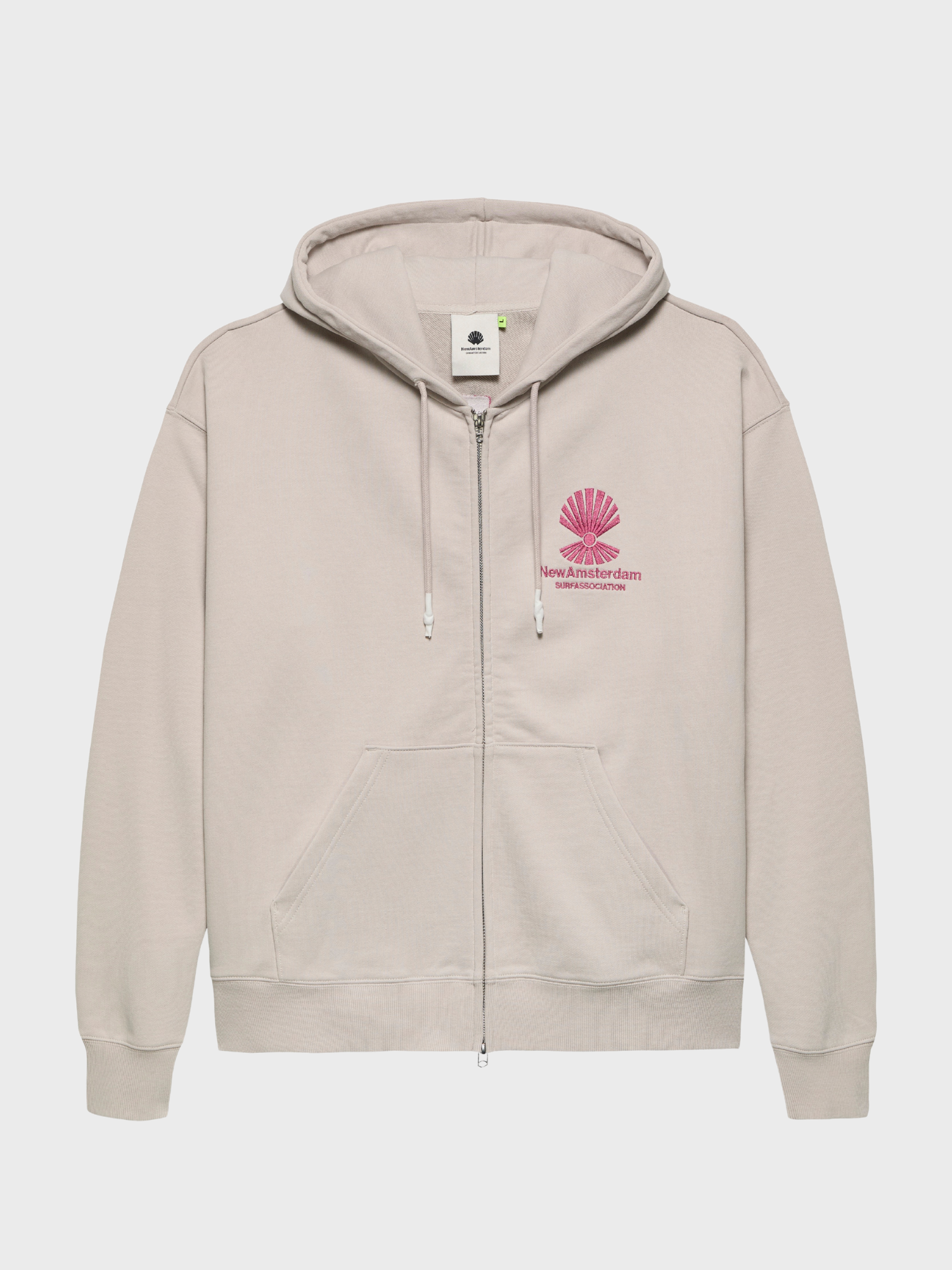 Hooded Zipper Sweater, Cut To A Relaxed Unisex Fit. Detailed With A Seasonal New Amsterdam Logo Embroidery On The Front And Back. This Hoodie Is Made Out Of A Heavyweight 455 Gsm Garment-Dyed Cotton.