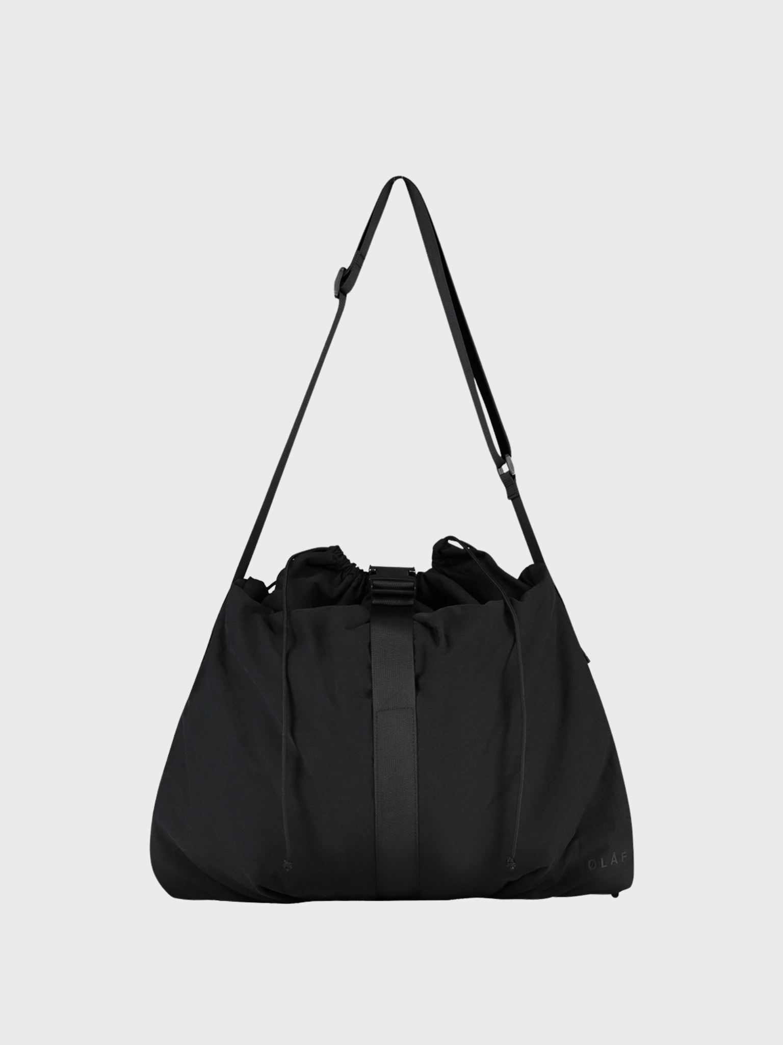 The Technical Twill Crossbody Bag in Charcoal is crafted from the same fabric as the Windbreaker and Cap. It can be worn both crossbody and over the shoulder, featuring two closure systems with cord adjusters. The strap is fully adjustable for a customized fit.