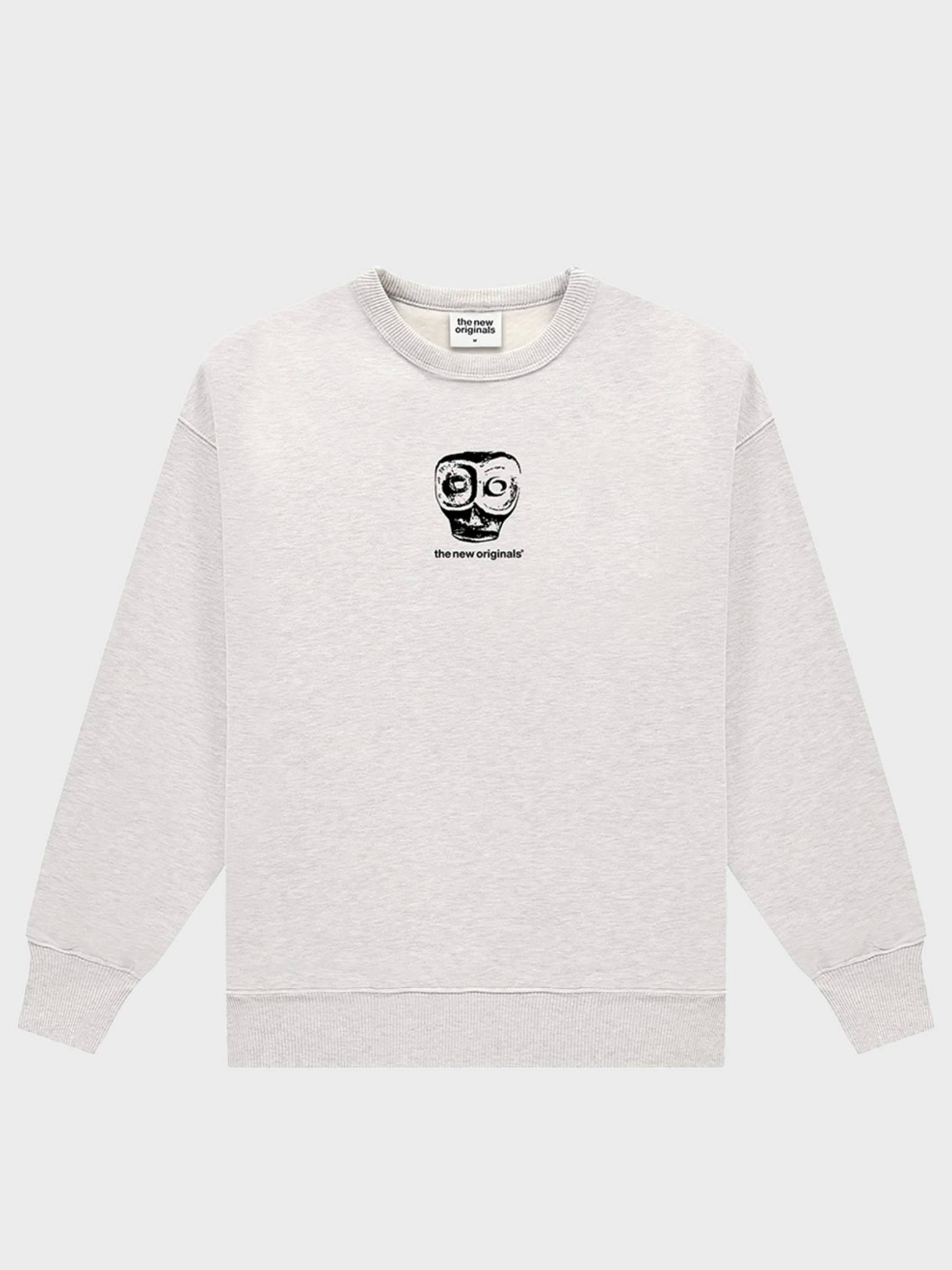 This Melange crewneck features the new originals® logo in mask form. Made from soft, heavyweight cotton with a ribbed collar, cuffs, and hem for a comfortable fit. The clean back keeps it minimal.