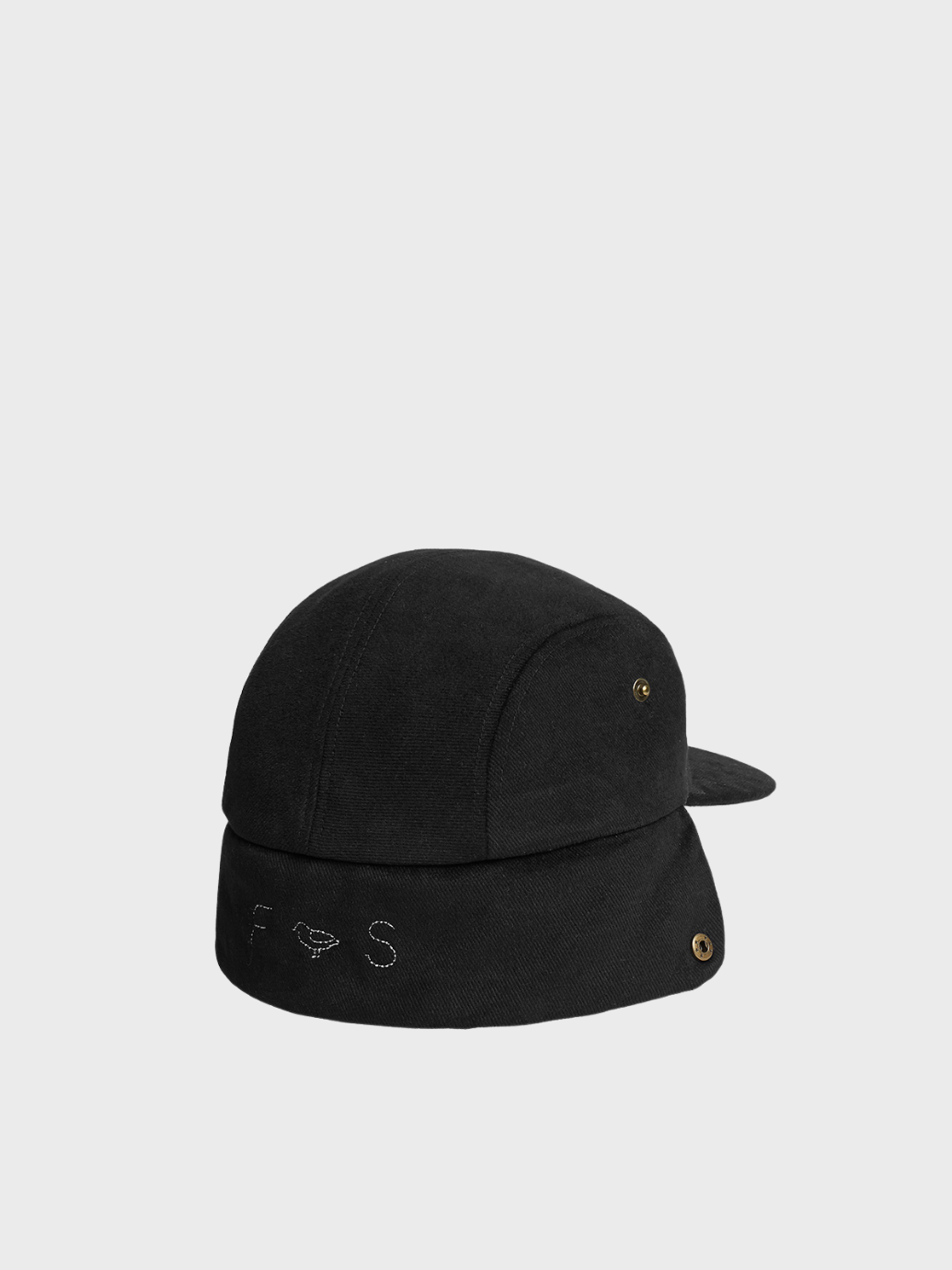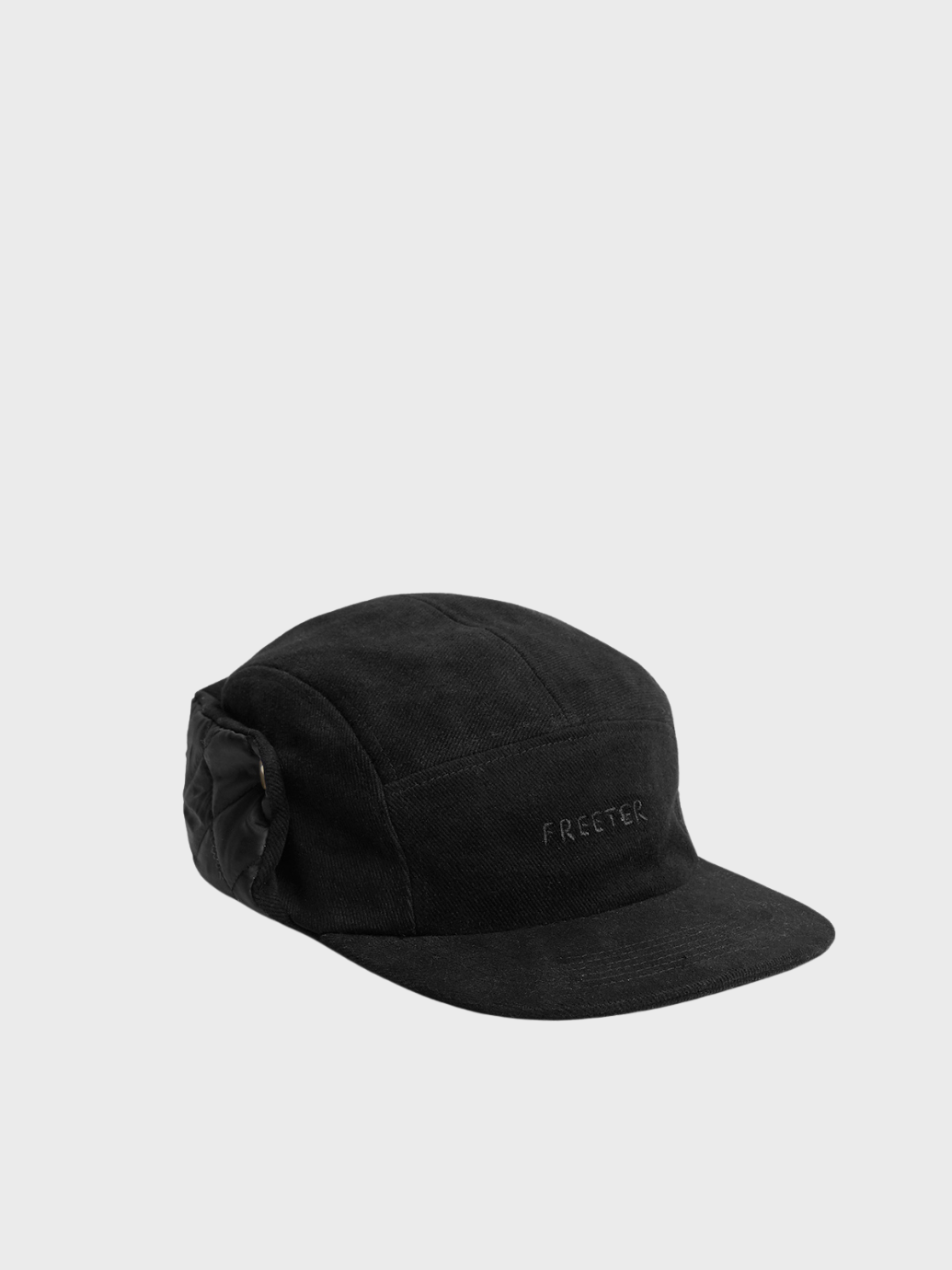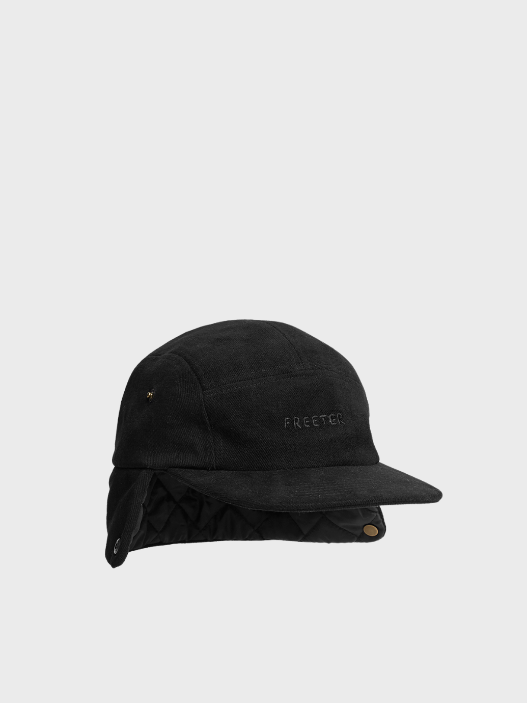Winter earflap cap designed with a brushed cotton texture. It features a chain stitch logo on the back and branded lining inside, adding extra details to its design.