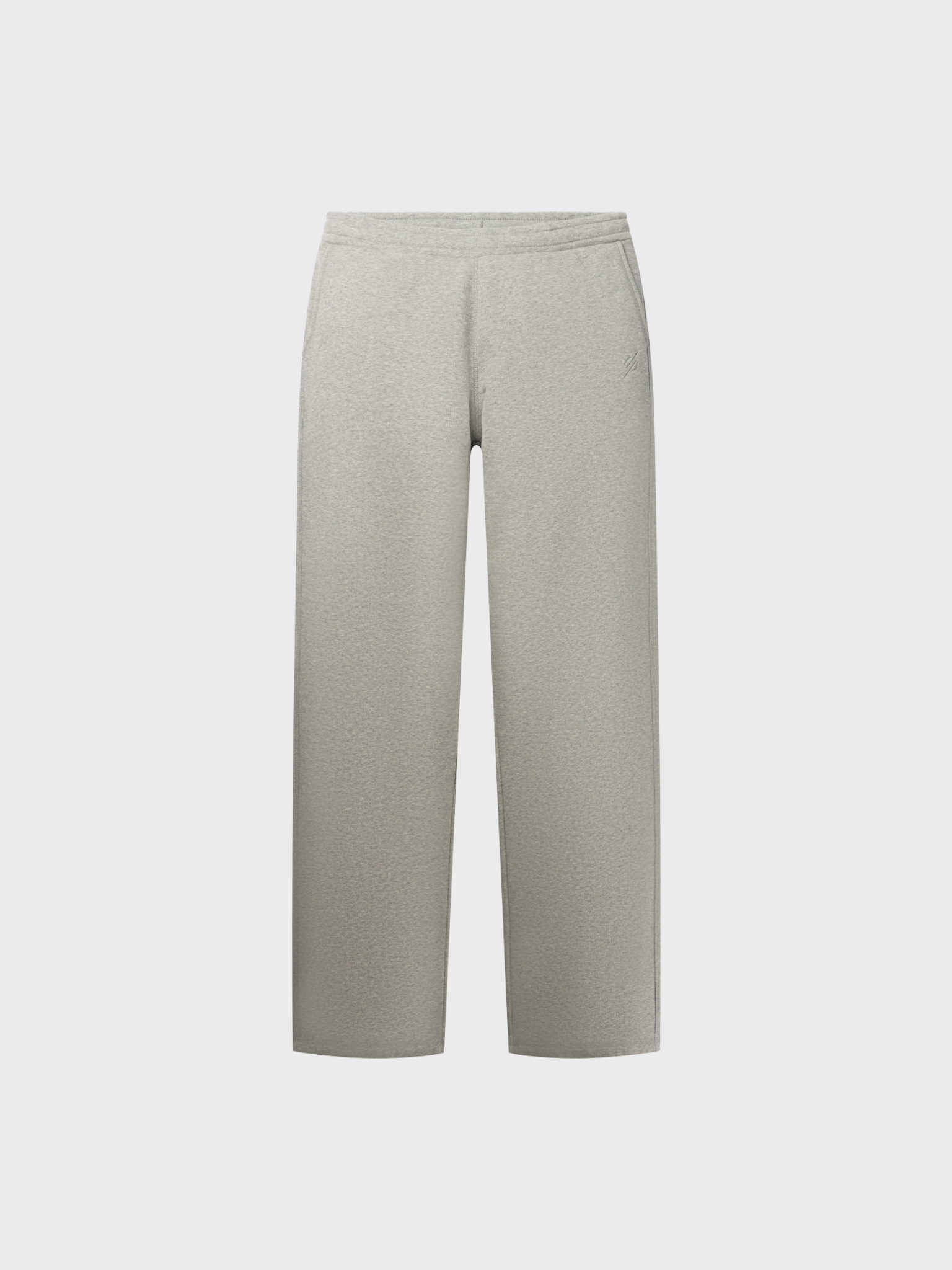 mono rib pants have a straight silhouette and are equipped with pockets across front and back. A high density embroidery artwork decorates the pants.