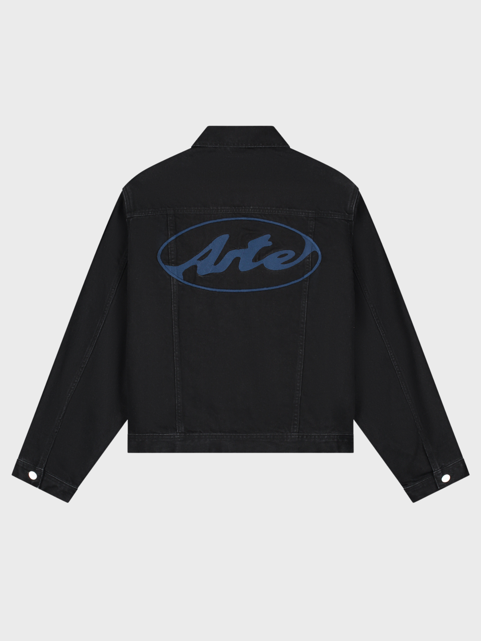 Crafted from premium denim, the jacket features a seasonal Arte logo stitched across the back in navy. Rendered in a washed light blue shade, the jacket is finished with classic chest pockets, two side pockets and a hidden button placket.
